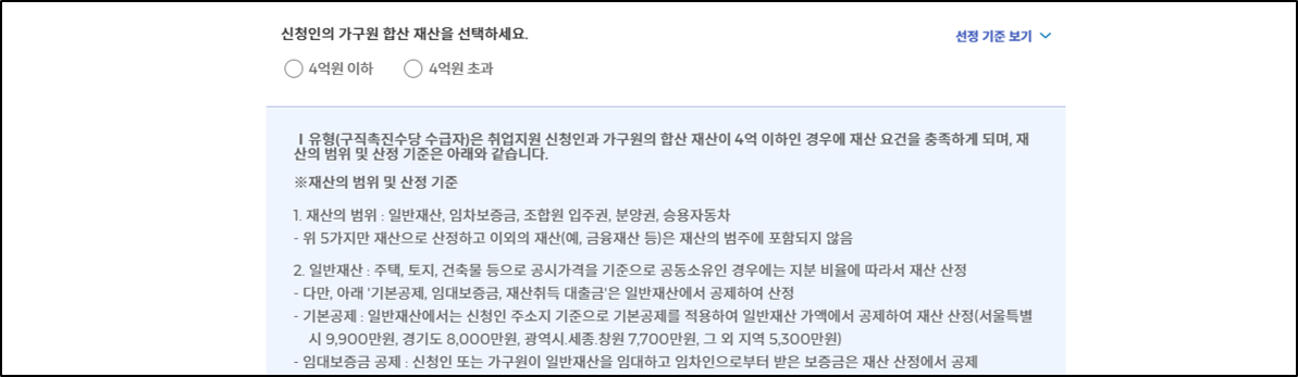 9. 신청인의 가구원 합산 재산을 선택하세요.