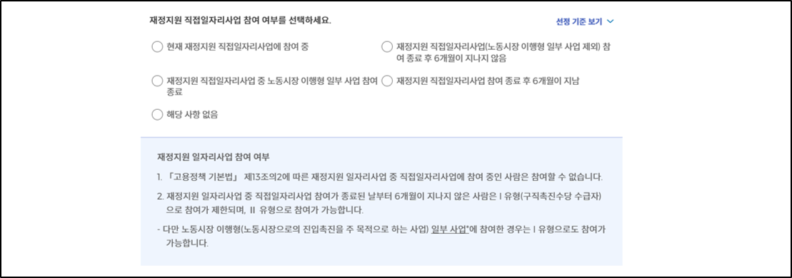 2. 재정지원 직접 일자리사업 참여 여부를 선택하세요.