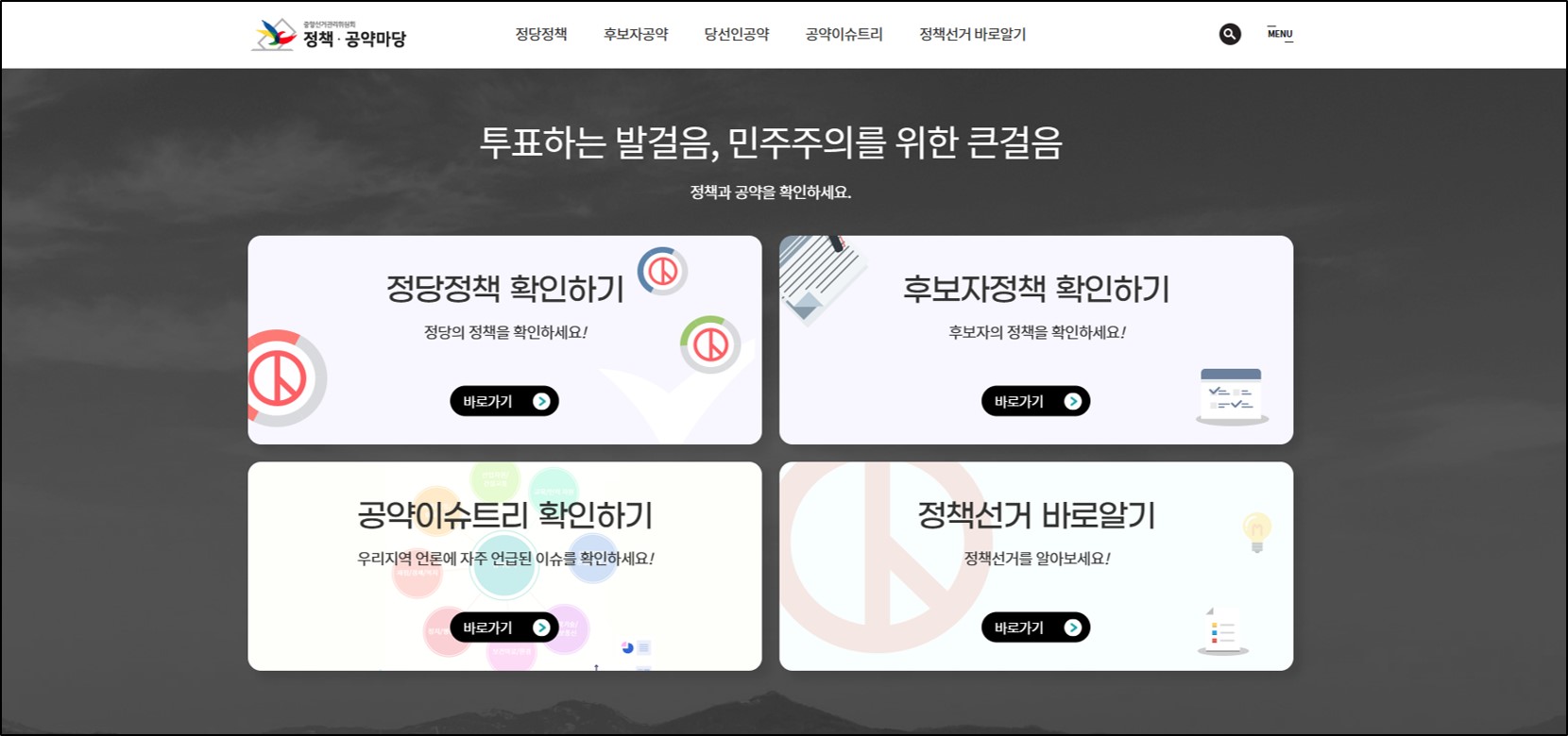 이번에 실시되는 제22대 선거 후보자들의 공약에 대해 궁금한 분들도 중앙선거관리위원회 누리집에서 정책과 공약을 확인하실 수 있습니다.